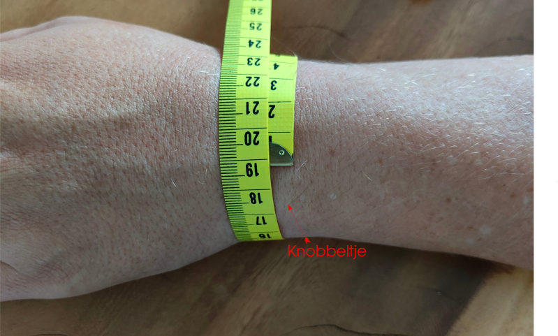 Hieronder zie je een voorbeeld hoe je maat te bepalen, hier wordt 19cm gemeten.